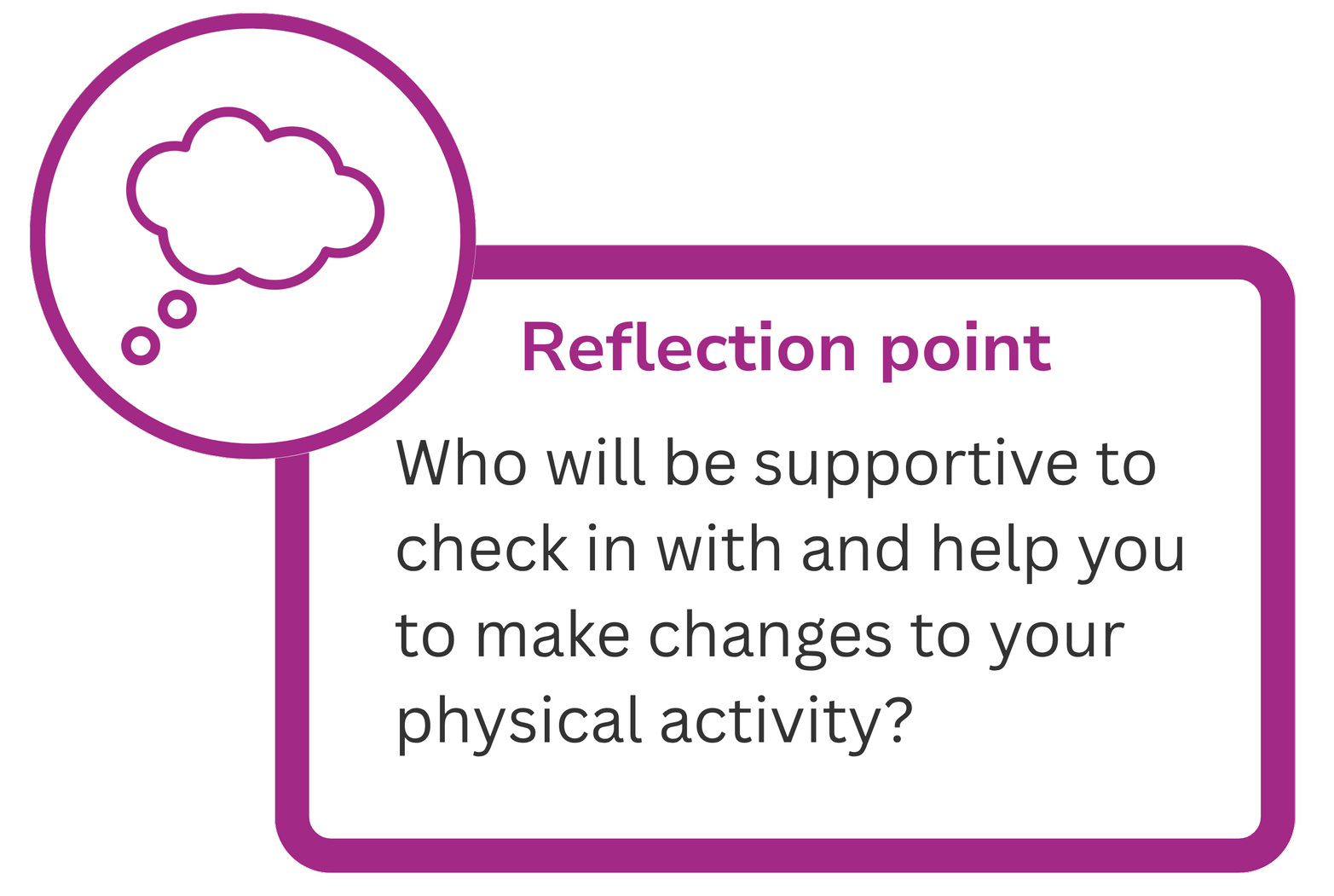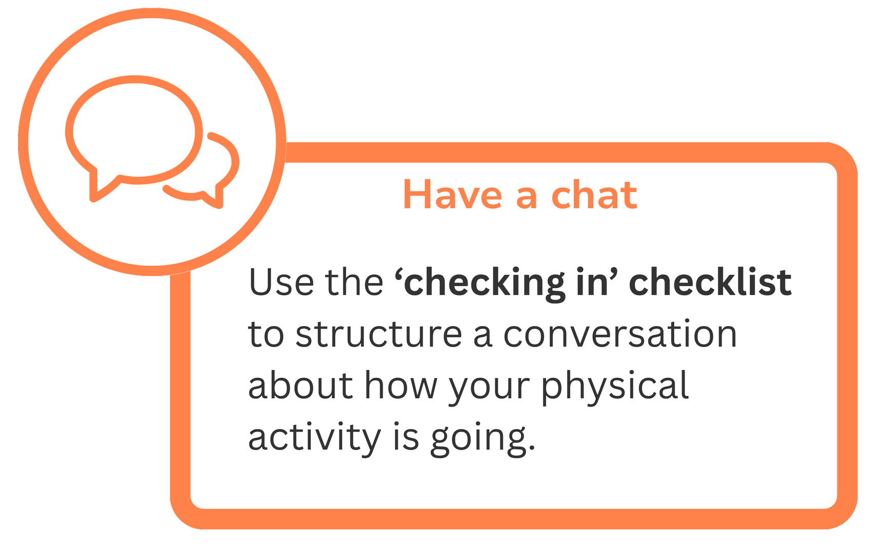 This section is about planning for regular ‘check ins’ where you can talk about your physical activity with a trusted person. We will also share practical tips on speaking up when you want to sort out an issue.
